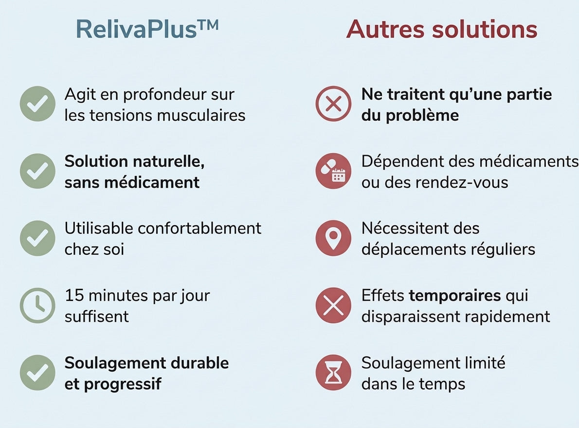 En ce moment, RelivaPlus est disponible à -50% — soit moins moins que le prix d'une seule séance de thérapie