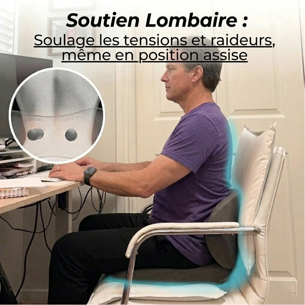 Il convient particulièrement aux personnes souffrant de douleurs lombaires, de tensions musculaires, de raideurs, ou d’un inconfort lié à une position assise prolongée ou à l’âge.